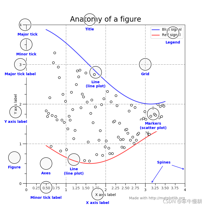 这个就是我们常说的坐标轴。不再赘述。事实上,越解释越糊涂。。。有兴趣的小伙伴可以看看matplotlib文档的原始说明,反正我是越看越晕。。。还不如直接看代码例直到怎么使用就可以了。