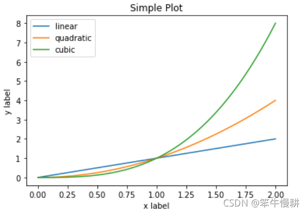 ax.plot(x, x**3, label='cubic') # ... and some more.