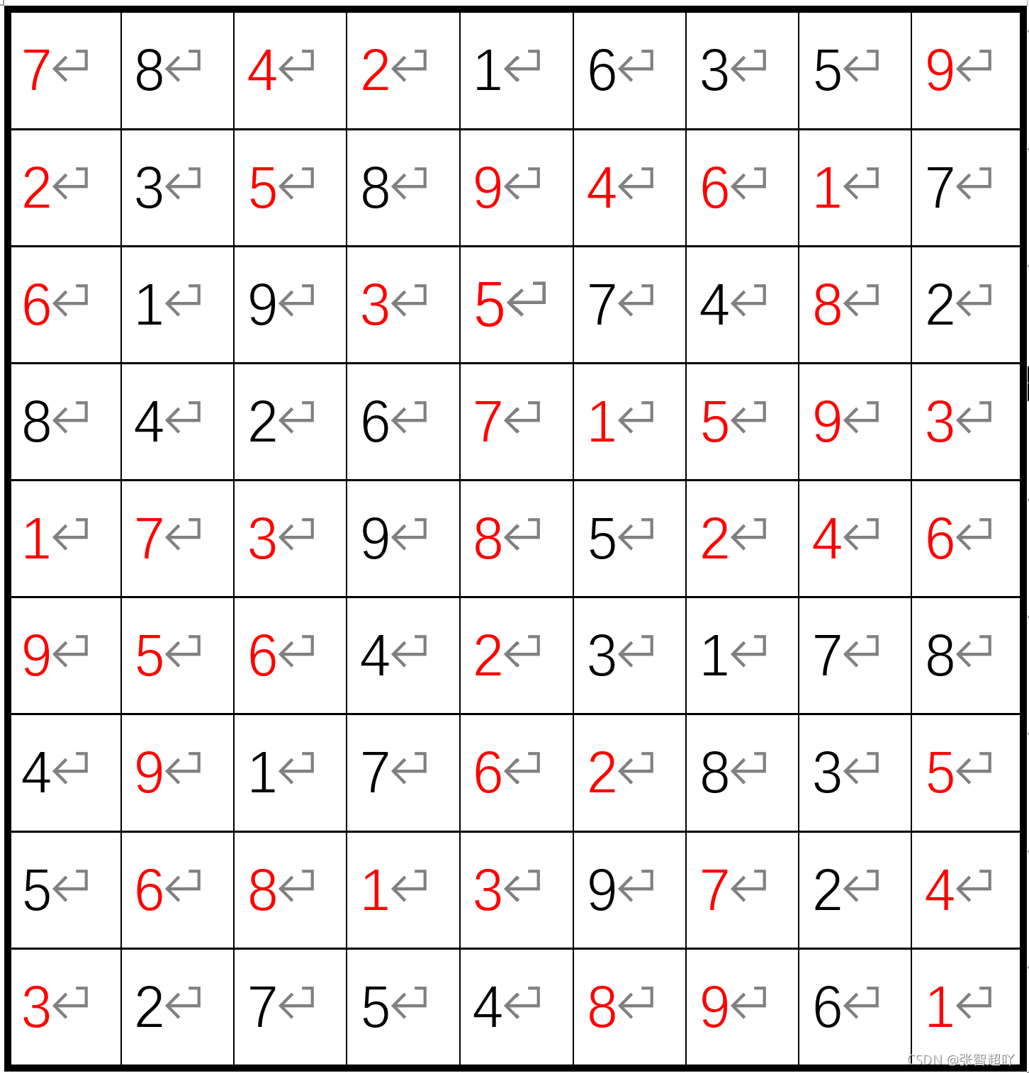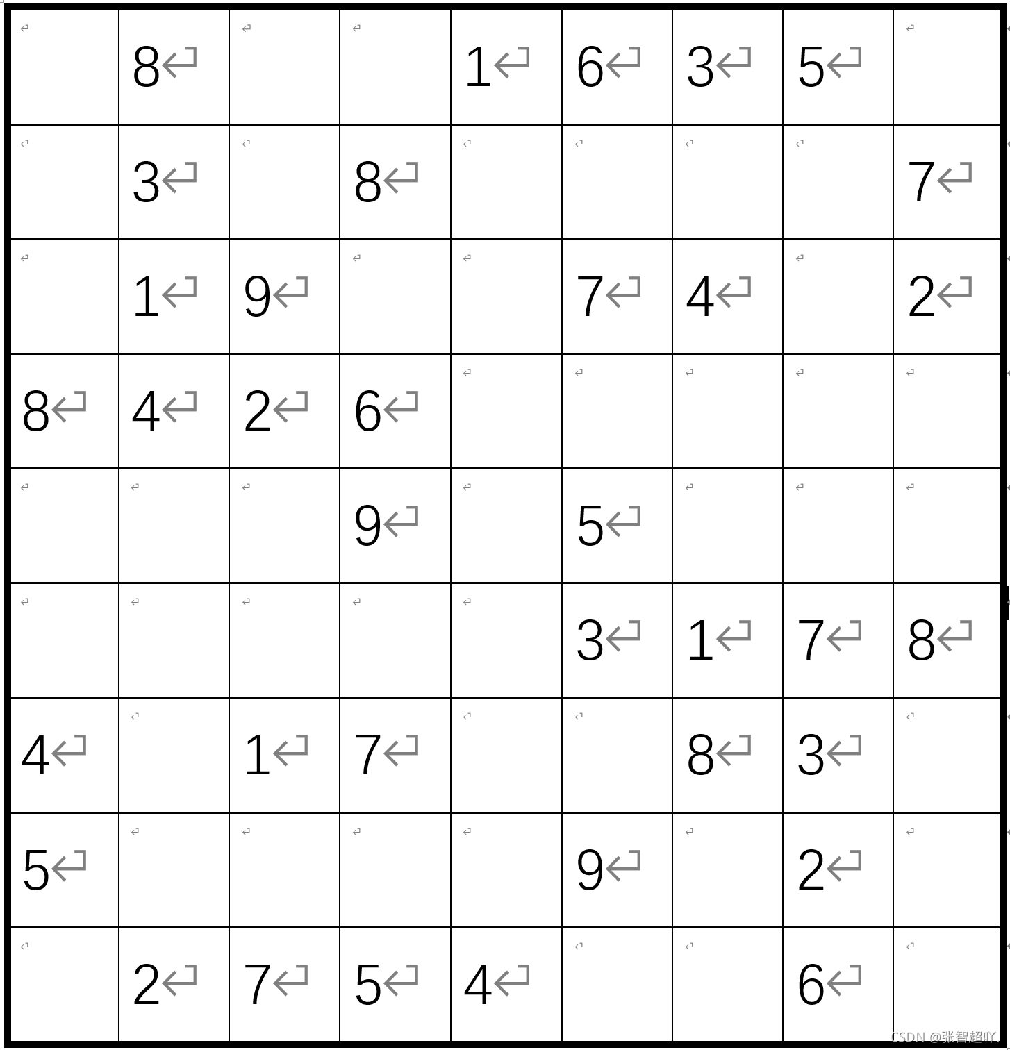 标准数独是由一个给出了提示数字的9×9网络格组成的,我们只需要将其空格填上数字,使得每一行,每一列以及每一个3×3宫都没有重复的数字出现。并且每一道数独题都只有唯一的答案,它的规则简单但并不需要任何其他技巧。通过应用逻辑思维推理,得出空白格中的数字,从而提高数学逻辑思维。