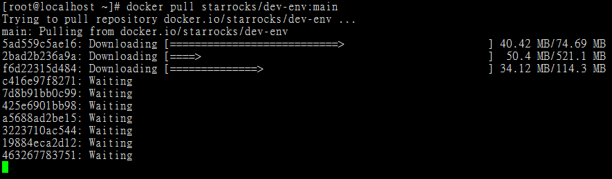 [root@localhost ~]# docker pull starrocks/dev-env:main