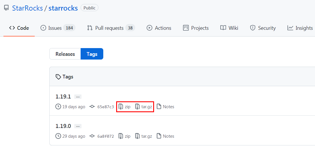https://github.com/StarRocks/starrocks/tags https://github.com/StarRocks/starrocks/tags