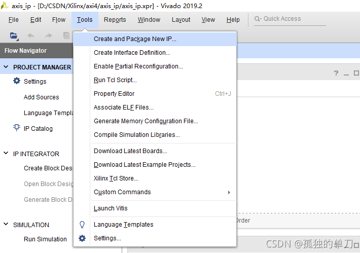 首先新建一个工程,然后点击Tools-----create and package new ip