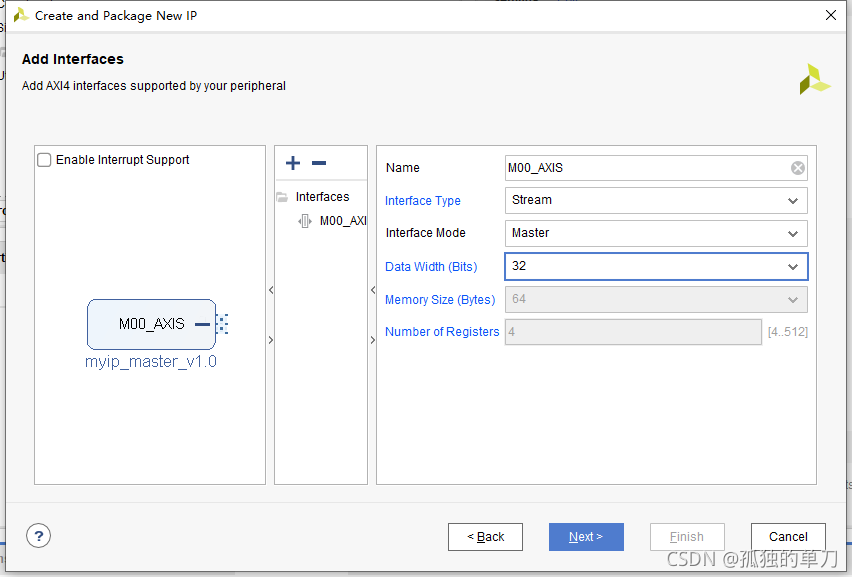 选择Stream接口,接口类型选择主机Master,数据位宽32位