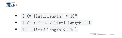 请你将 list1 中下标从 a 到 b 的全部节点都删除,并将list2 接在被删除节点的位置。