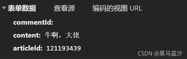 可以发现它的表单数据中有content:牛啊,大佬,这是我们在文章下打的评论的内容,而且新建一个浏览器再次进行同样的操作可以看到,它的表单数据commentld、articleld没有变化。