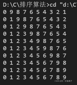 我们需要排序的序列是num[10] = {9,8,7,6,5,4,3,2,1,0}