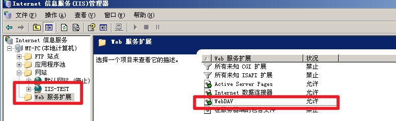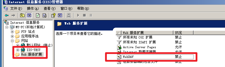 IIS Server 在 Web 服务扩展中开启了 WebDAV之后,支持多种请求,配合写入权限,可造成任意文件写入。