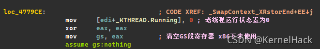 段寄存器相关文章中提起,x86中未使用GS段寄存器,线程切换就会清空GS值,论证如下: