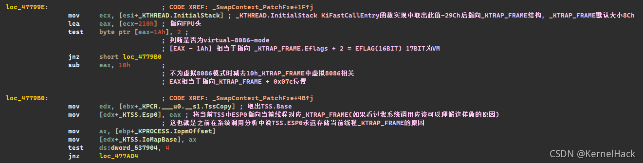 线程主动切换分析完毕,按照大致流程以及对段,TSS,_KTRAP_FRAME补充.这里再次说明,参考WRK, Windows内核原理与实现, Windows内核情景分析时不要完全按照它们的内容进行比较,对自己内核文件进行分析最为准确.同时要搞懂全部实现比较难,按照主线路分析即可.