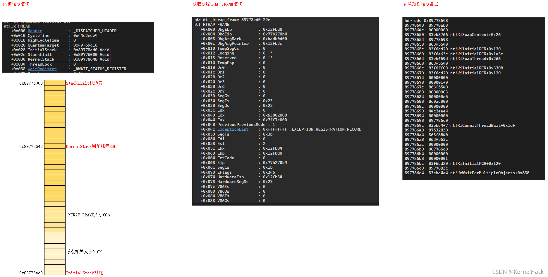 内核堆栈结构以及通过_KTHREAD -> 堆栈相关回溯ESP0,获得_TRAP_FRAME:
