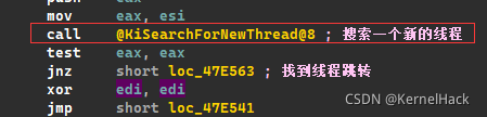 KiSearchForNewThread函数首先判断是否找到就绪线程,找到跳转(这里按照成功路线分析).