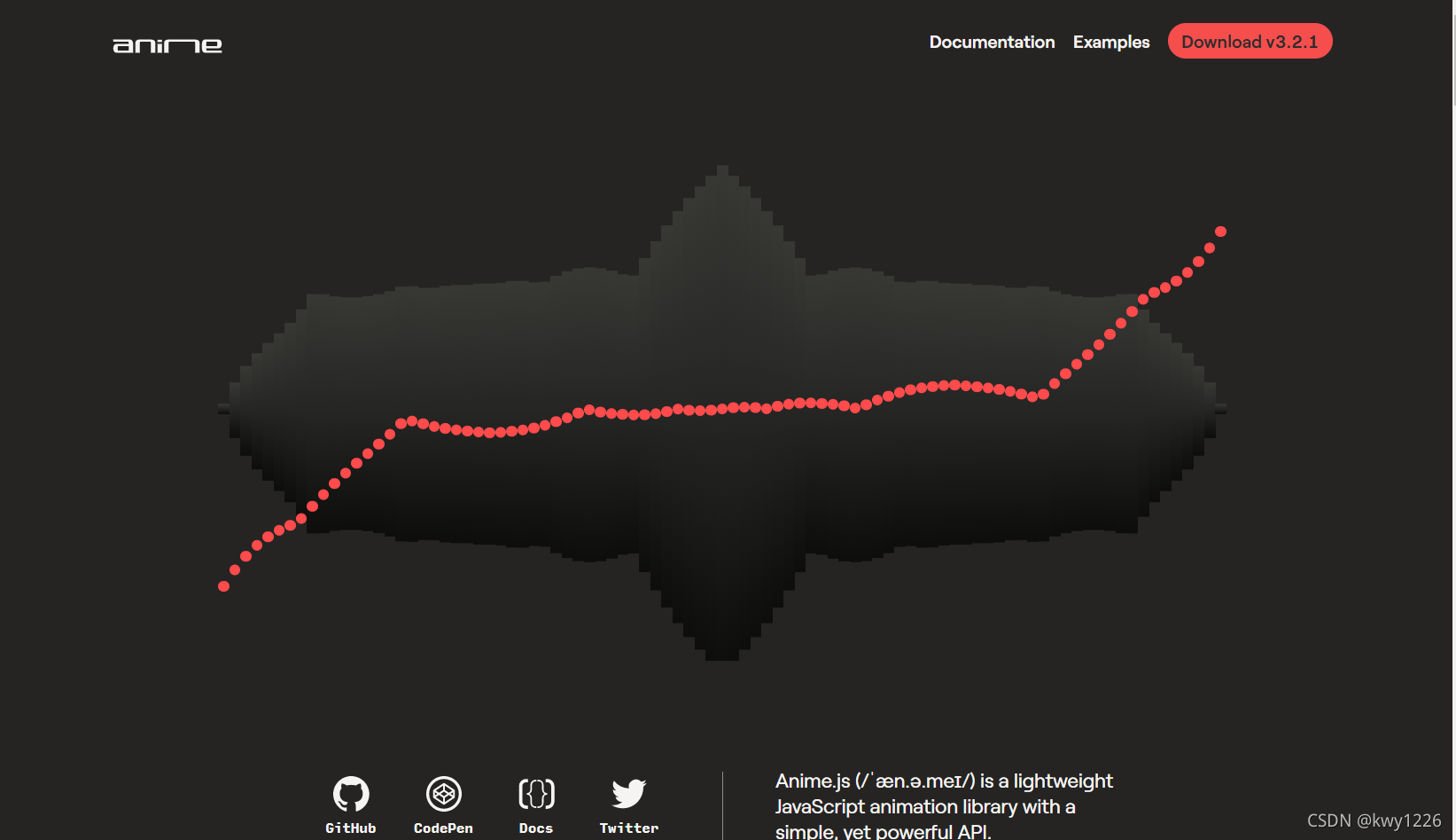 anime.js • JavaScript animation engine Anime.js 是一个库,通过使用 CSS 属性、SVG、DOM 属性、JavaScript 对象,可以轻松地为网页构建快速动画,具体的动画参数、具体的目标值、多个定时值、播放控制和运动路径等特点。